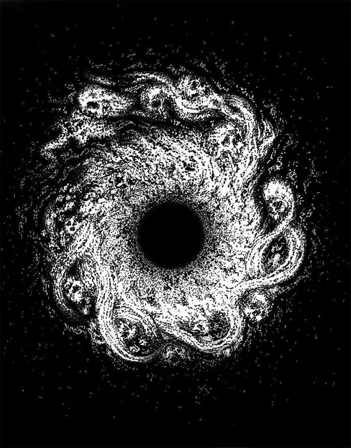 Раздался громкий протяжный выдох, и теперь уже четко очерченная рогатая голова начала поворачиваться в мою сторону, после чего шепот из непонятных мне слов усилился еще больше. Его лицо было черного цвета и блестело, как смола, отчего на контрасте огромный глаз в показавшемся профиле этой жуткой физиономии казался белым, словно куриное яйцо.