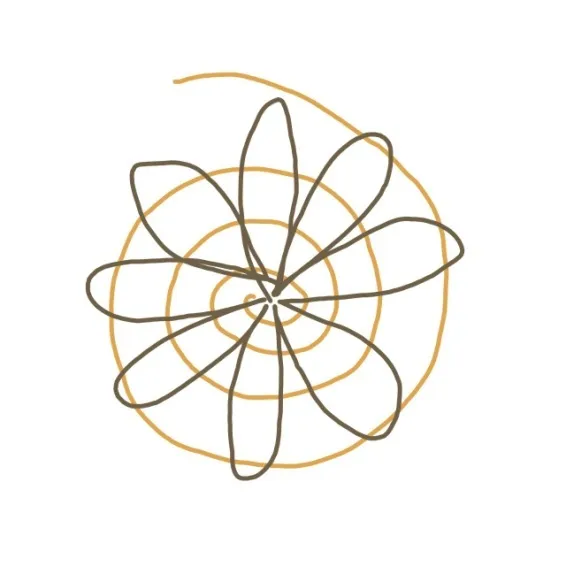 Пять витков спирали, из центра спирали выходят 8 лепестков
