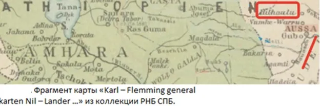 По словам Иоанна, столица его царства – Ульна стоит на текущей из земного рая реке Фисон. В нашем исследовании Аваш. Или река, притоком которой была, когда – то река Аваш. См. первую часть настоящего расследования. Главу «Рай и реки Рая». Река Фисон, по моему мнению, река Аваш (Hauauch). На фрагменте немецкой карты селение Нilhaulu – Хилхаулу. Вероятно, здесь и была столица царя Иоанна. Корни этого слова Хил = Кил = Киль – голова. В топонимии – вершина, исток реки(лезг.). (М). В топонимах может произносится без мягкого знака. Второй корень Хаулу = хул = кул – склон, скат (осетин.). Кула – склон горы или берег реки (эвенк). (М). Берег реки.