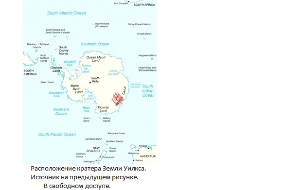 Этот кратер расположен на том побережье Антарктиды, которое на реконструкциях Пангеи «прикреплено» к южному побережью Австралии.