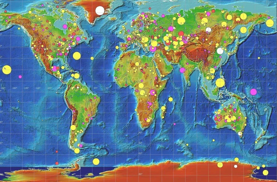 Карта кратеров на нашей планете возникших в результате падения метеоритов