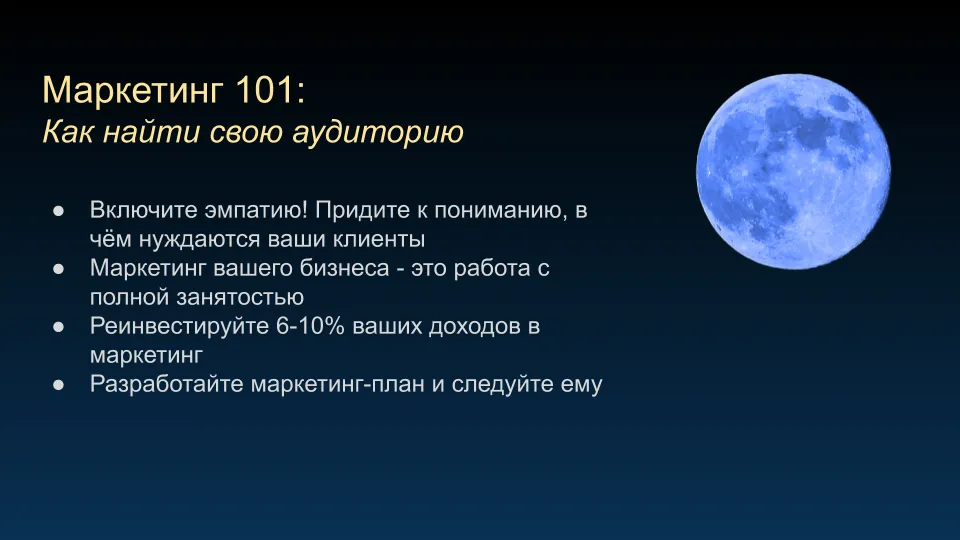 Маркетинг – это понимание того, как найти свою аудиторию. Каждый нуждается в том, чтобы найти “своих” людей.