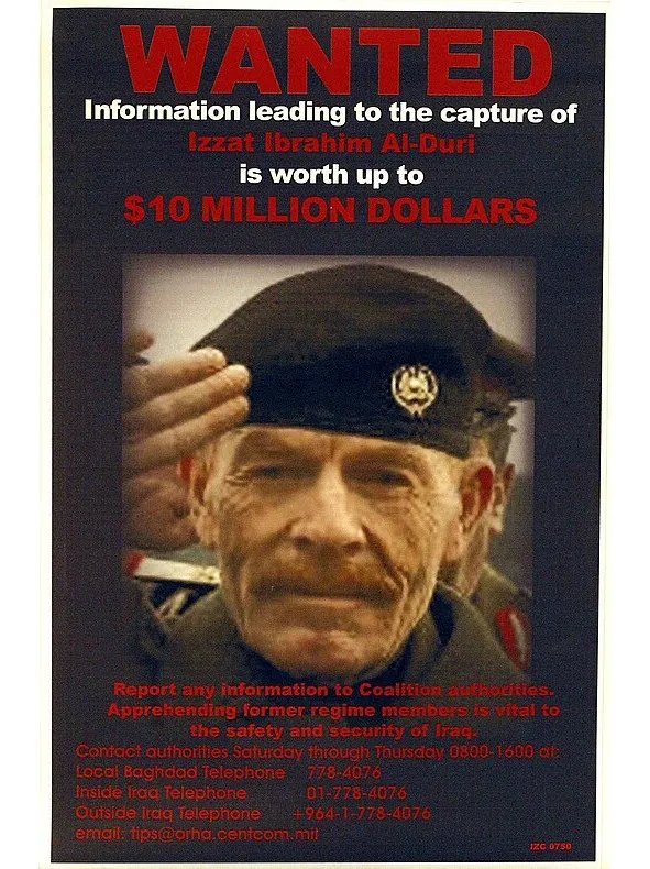 В ноябре 2003 года командование оккупационных войск объявило вознаграждение за поимку Иззата Ибрагима в размере 10 млн долларов.