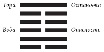 ЗАМЕЧАНИЕ. Вплетенный знак – это знак ОБДИРАНИЕ, 23, составленный образами Горы (Почва) и Земли (Почва). Оба знака преодолевают стихию тела знака Вода. Вода знака Вода, указывающая на мать, порождает Дерево знака Гром. Это расходует ее силы. Кроме того, верхний и нижний вплетенные знаки (знаки Почвы) преодолевают и ограничивают Воду. На основании этого делается заключение о трудных родах.