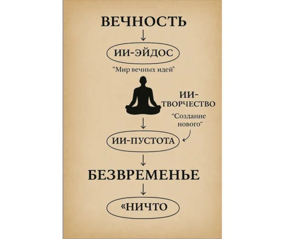 Все наоборот: все начинается из «ничто» и переживается даже без ИСС как безвременье, а завершается созданием вечных ценностей.