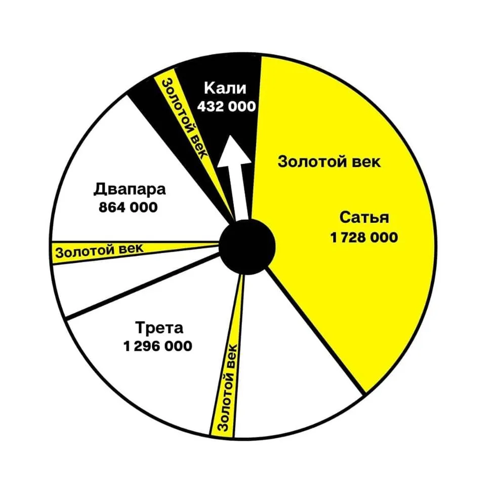 Сатья юга (весна), Трета юга (лето), Двапара юга (осень), Кали юга (зима).