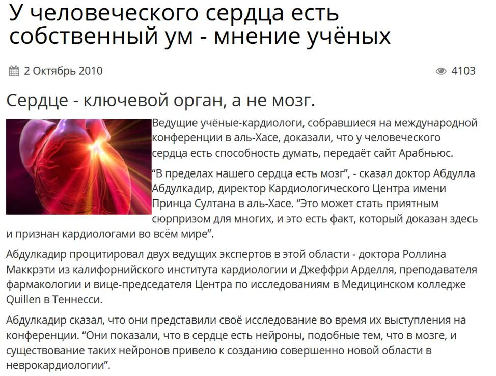 8.1.14. Сердце – это первый орган, который закладывается в организме при внутриутробном развитии. Сердце рождается задолго до того, как рождается разум, оно бьётся задолго до того, как появляется мозг, и у сердца уже есть свой собственный интеллект.