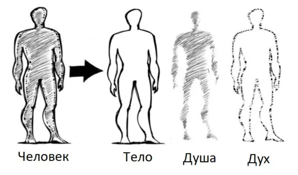 Человек состоит из тела, души и духа. Это триединство также проявляется и в составе мира, в котором тоже присутствуют 3 плана: физический (тело), астральный (душа) и ментальный (дух). Умирая, человек лишается лишь своего физического плана и переходит в астрально-ментальное состояние. Имея при этом возможность родиться вновь, обретя новое физическое тело.
