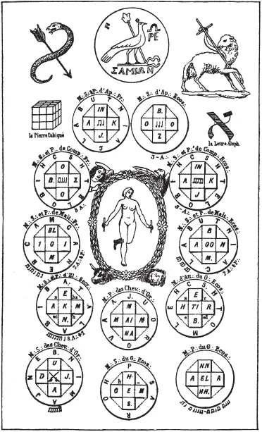 По возвращении из Египта Платон вместе с Симмием путешествовал к границам Карии, где встретился с некими жителями Делоса, которые попросили его истолковать пророчество Аполлона. Пророчество гласило: «Для того, чтобы положить несчастьям Греции конец, надо удвоить каменный куб». Попытались воспроизвести предписанное с камнем, который находился в самом храме Аполлона; но в результате удвоения его со всех сторон получился многогранник с двадцатью пятью гранями, а если доработать получившуюся фигуру до кубической формы, то объем ее будет превышать объем первоначальной не в два, а в двадцать шесть раз. Платон отослал вопрошающих к математику Евдоксу75, пояснив, что оракул велел изучить геометрию. Неизвестно, то ли он сам не понял сути предсказания, то ли хотел скрыть ее от непосвященных, – понятно лишь, что на самом деле преумножение каменного куба объясняет все тайны священных чисел, включая тайну вечного движения, которую адепты скрывают, а глупцы ищут, называя «квадратурой круга»76. Нагромождением двадцати шести кубов вокруг единственного центрального оракул показал жителям Делоса не только элементы геометрии, но и ключ к созидательной гармонии, объясняемой через взаимодействия форм и чисел. В плане всех великих аллегорических храмов древности имеется преумножение а) куба крестом, б) вокруг которого описан круг, в) кубический крест, движущийся в шаре. Эти замечания, яснее выражаемые диаграммой, дошли до нас в масонских посвящениях и являются совершенным подтверждением имени этих обществ, поскольку являются также и основными принципами архитектуры и строительства.