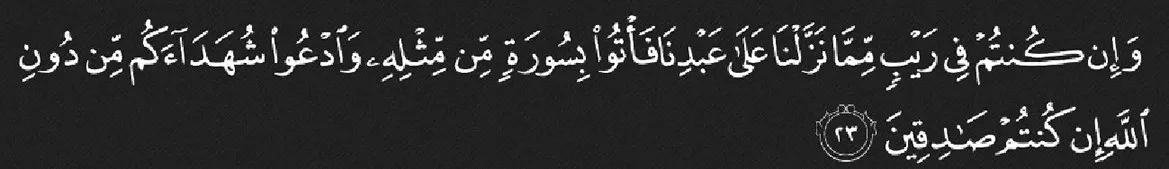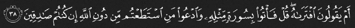 Всевышний Господь бросает людям вызов и говорит: «Если же вы сомневаетесь в том, что Мы ни спослали Нашему рабу, то сочините одну подобную суру и призовите своих свидетелей помимо Аллаха, если вы говорите правду». Сура «Корова», 23 аят).