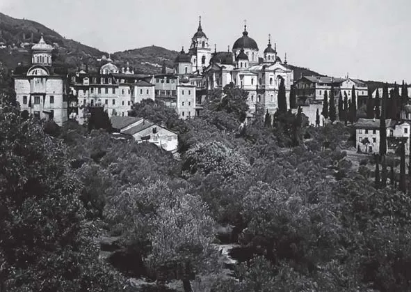 Андрей Николаевич Муравьев в том же 1849 году приложил немало сил для открытия скита. Но успеха и он достичь не мог. Перед отъездом он решил подарить икону своего небесного покровителя келлье и с тем пришел к о. Виссариону. Тот говорит: «А у нас есть два изображения апостола, одно из них в иконостасе. И существует предание, что когда-то келлья праздновала апостолу. Есть какая-то надпись на греческом наверху над вратами. Может, сможете вы ее прочитать?» Этот муж (камергер) берет лестницу и читает надпись14, что храм раньше был посвящен апостолу, и говорит: «Братья, знаете ли, что доселе, сами того не зная, жили под сенью Первозванного, и отныне вам должно достойно чтить его имя…» И в этот момент является антипросоп Ватопедского монастыря и приглашает отца Виссариона ехать в монастырь за новой омологией об учреждении скита.
