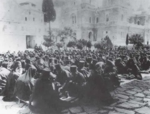 Праздничная трапеза насельников Андреевского скита. Конец XIX в.