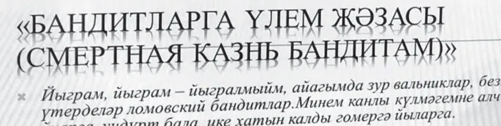 В татарской газете «Сабанче», в рубрике «Суд эшлере» (Судебные дела), был представлен текст «Смертная казнь бандитам». В нем давалась информация о казни бандитов: «24 августа, по решению Пензенского губернского суда трое бандитов: Боровков, Бижитский и Попов были расстреляны по обвинению в ограблении имущества и убийстве Абдрахмана и Кадира Патиевых и Ахмаджана Баткаева.