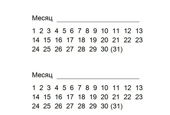 На 2 странице книги есть календарь на 2 месяца. Подпишите месяца прохождения курса, обведите дату начала и конца курса. Каждый день, когда все практики выполнены, необходимо обвести круглешком. Это очень действенный метод мотивации, хоть и очень простой.