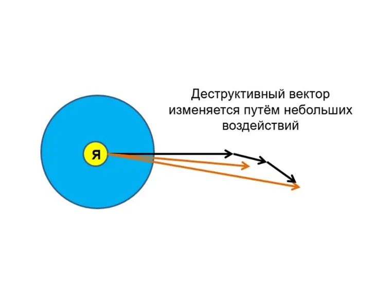 – По физическим законам прямое противодействие может сократить время решения проблемы, однако истощить вас. Может не хватить сил сместиться обратно к исходной точке на шкале. Лучше использовать принцип айкидо. То есть использовать деструктивную силу для ухода из области проблем. Отпустите борьбу с ситуацией и сформируйте позитивный вектор, слегка отклоняющий проблему в сторону. Позитивная энергия воздействует на путь страданий и постепенно меняет направление на противоположное. Времени уходит больше, а сил тратиться меньше.