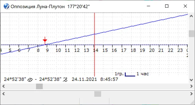 При нажатии на линию аспекта на карте отображается график динамики аспекта, позволяющий определить динамику наступления полного аспекта.