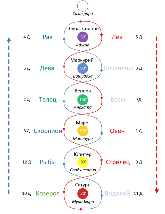 Меркурий на уровне внутренних органов – это Щитовидная и Паращитовидная железа (область горла), бронхи, верхняя часть лёгких, а также зрение, слух, речь, краткосрочная память. На уровне энергетики, Меркурий управляет Горловым центром – Вишуддхой.
