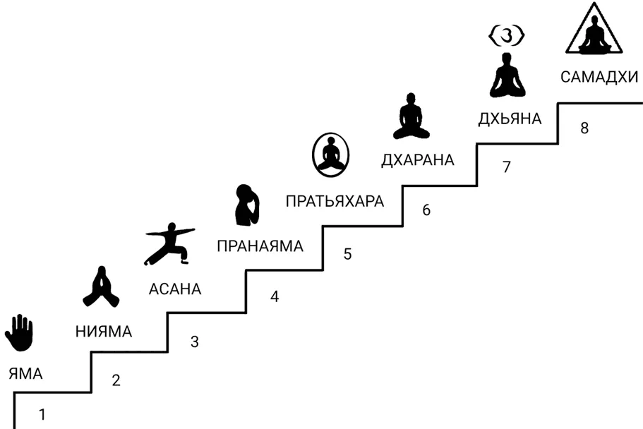 Мудрец Патанджали предлагает рассматривать йогу как восьмиступенчатую систему, которая включает в себя следующие ступени: