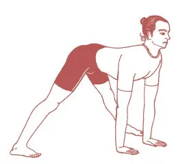 Прижимайте ладони к полу и отводите плечи назад, как будто вы хотите сдвинуть лопатки ближе к талии, а ключицы и грудину продвигайте вперед.