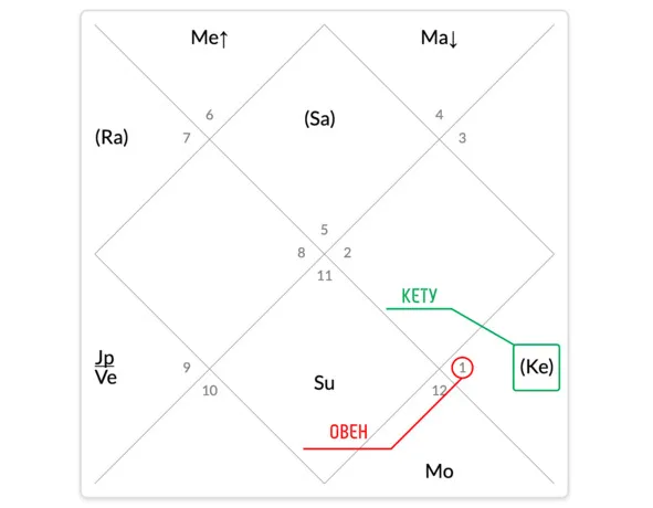 В моем примере это цифра «1», что соответствует знаку зодиака Овен. Таким образом получается, что в этом примере Кету находится в Овне.