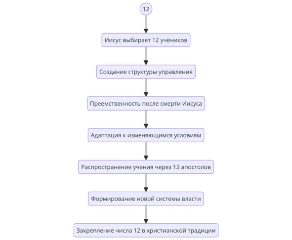 Таким образом, число 12 в контексте учеников Иисуса несло в себе не только сакральное, но и стратегическое значение. Оно символизировало полноту, преемственность и власть, а также обеспечивало движению структурированность и устойчивость. Использование этого числа в политических и религиозных системах прошлого подтверждает, что оно являлось универсальным символом силы и организованного управления. Это делает его выбор не просто случайностью, а продуманной стратегией, позволяющей создать устойчивое духовное движение, которое смогло пережить своего основателя и трансформировать мировую историю.