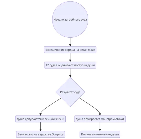 Суд Осириса, ключевой концепт египетской религиозной традиции, представлял собой ритуал взвешивания души. Согласно мифологии, после смерти человек попадал в загробный мир, где его сердце взвешивали на весах Маат (богини истины и справедливости), а 12 судей определяли, достоин ли он вечной жизни или будет уничтожен пожирающим монстром Аммат. Эта концепция подчёркивала неизбежность моральной ответственности и отражала представление египтян о высшей справедливости, которая управляла миром.