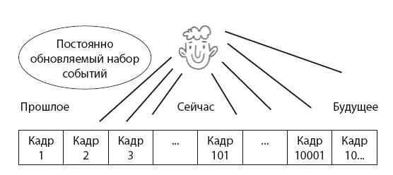 Тот же принцип соблюдается и с нашими органами чувств, как с приемником, – мы делаем «срез» событий на сегодня, хотя события сами по себе уже «готовы наперед» в сознании.