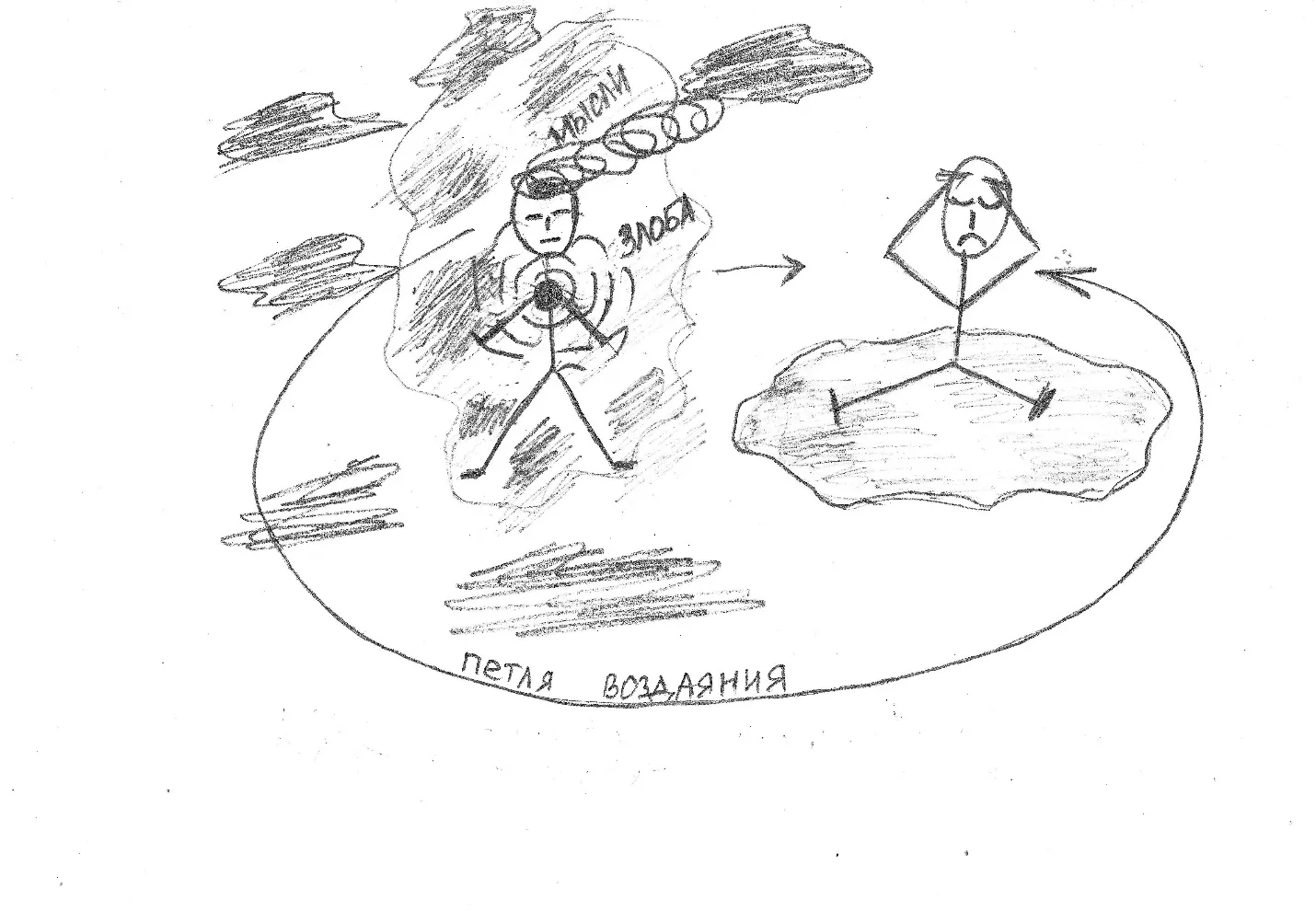 Неприятное чувство, которое возникает во время недовольства чем-то, когда не по-нашему, не так, как мы хотим – это злоба. Она ощущается в теле, как тяжесть, образовавшаяся в районе желудка ниже уровня груди. Эта тяжесть выглядит, как чёрный ком, погрузившийся в организм. Злоба – основа для формирования других эмоций. Испытывая нарастающие негодование, злость, гнев, возмущение, мы чувствуем физически, как из этого кома начинают выплёскиваться брызги грязи, поднимающиеся в середину груди и летящие наружу. Если это всё представить мысленно, получается, что мы во время чувствования и высказывания злобы и наложившихся эмоций, буквально забрызгиваем своей грязью людей и мир вокруг…