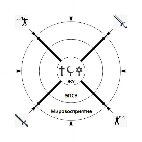Этические, психологические и социальные установки стали намного более «активными» и догматичными, по сравнению с первобытным мышлением, и начали оказывать сильное одностороннее влияние (или, образно говоря, оказывать давление изнутри) на мировосприятие. Это начало происходить в ответ на резкое ухудшение именно социальных условий существования среднего человека по сравнению с первобытно-общинным строем, хотя общее количество материальных благ увеличилось. Великий немецкий философ Фридрих Ницше охарактеризовал эти установки как «мораль рабов», противопоставив её «морали господ»92 (которую, кстати, не следует путать с аморальностью).
