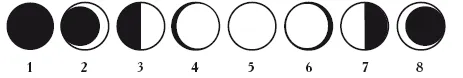 1 – Новолуние, 2 – серповидная Луна, 3 – первая четверть Луны, 4 – выпуклая Луна, 5 – Полнолуние, 6 – рассеивающая Луна, 7 – последняя четверть Луны, 8 – бальзамическая Луна.