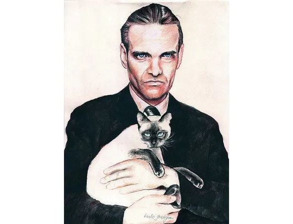 Рис. 4. Портрет Юрия Кнорозова с кошкой Асей, написанный парагвайским художником Карлосом Бедойя [118]