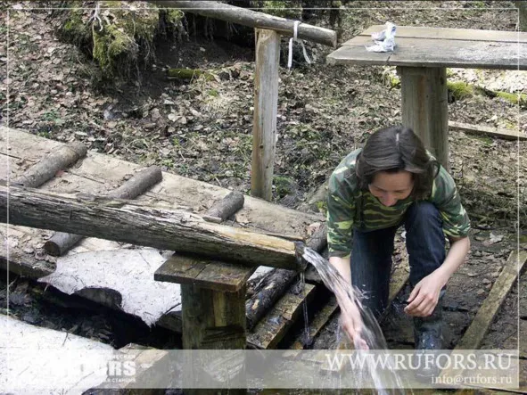 Люди сюда часто наведываются, ключ со временем привели в порядок, сделали мостки, протянули деревянный желоб, чтобы удобно было воду брать. Все старались делать без гвоздей и скоб, чтобы ключ не испортить.