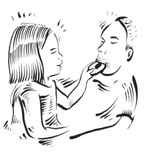 – Что же, давайте перейдем к практике. Вы ничего не получите, пока не сделаете что-то конкретное. В течение одной или двух недель возьмите на себя ответственность за счастье каждого, с кем вы вместе едите. Убедитесь, что все получают именно то, что они хотят, и, если что-то за столом для кого-то не подходит, уберите это ради них. Просто возьмите на себя ответственность за всех и привыкните к мысли, что вы на самом деле берете ответственность и за себя. Сделайте такого рода обязательство за ужином привычкой, а потом наблюдайте, как ваш партнер берет на себя ответственность за вас.