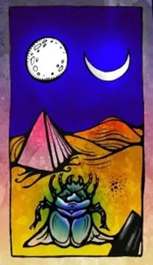 Сюжет карты: Ночь. Пустыня. На небе ярко светит луна. Но при этом на небе месяц, который находится в несвойственном для него положении. По пескам ползёт священный скарабей в сторону пирамиды под луной и бархана из песка под месяцем. Он только что выполз из-под чёрной гладкой каменной плиты. Жук начинает расправлять крылья и готов к полёту.