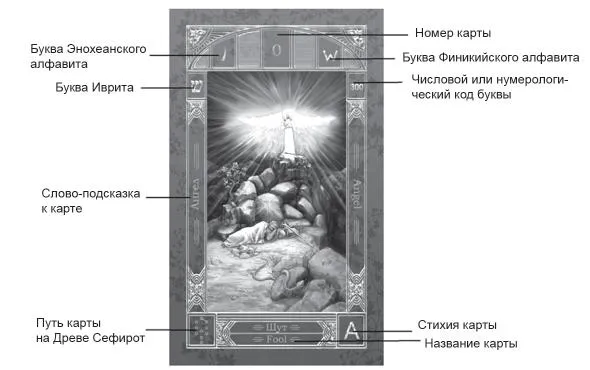 Да, вы увидите рисунок – сюжет, который передает основную идею карты. Но в то же время непременно обратите внимание на рамку карты, которая содержит множество символов и знаков, обозначений и элементов, которые будут полезны в будущем при работе с Таро. Все эти знаки, равно как и сюжет, призваны снабдить вас всей необходимой информацией, которая может понадобиться при изучении и работе с Таро.
