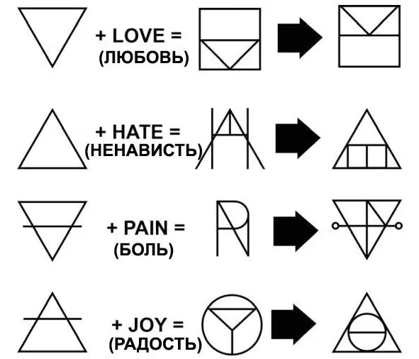 Пример образования отдельных сигил алфавита желания