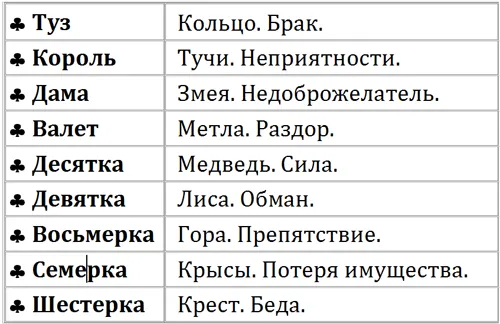 Таблица значений карт масти ТРЕФ
