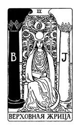 Карта символизирует тайное знание – эзотерическую науку. На это указывает свиток со священным названием Тора, цикл Луны в головном уборе Жрицы, колонны храма, вход в который она закрывает. Верховная Жрица – это подсознание, пассивная женская энергия, холодность и отстраненность от суеты и искушений.