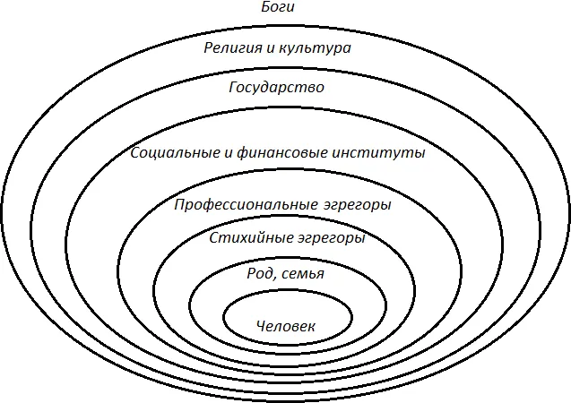 Уход от влияния эгрегоров – это умение балансировать между убеждениями, правилами, идеями не цепляясь за них, как за убеждения абсолютной правоты. Это выход из системы, где есть хорошо и плохо! Нужно понимать, что все идеально и все нейтрально. Только наше субъективное мнение и придача определенной значимости чему-то одному, создает эту разбалансировку, уводя нас с «золотого пути, серединного пути» – пути мудрости и Единства. Иерархию эгрегоров можно представить, как пирамиду.