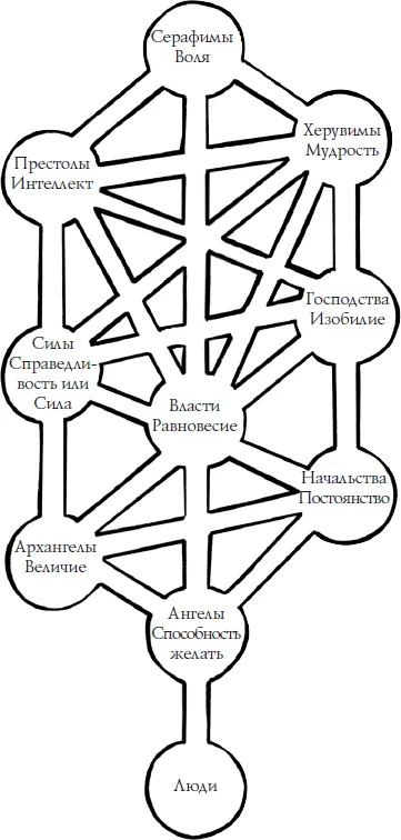 Девять качеств высших сфирот – это только названия серий конкретных качеств, более или менее символических; перечисление и понимание их значений требуют терпения, на которое способны далеко не многие. Такого же тщательного обдумывания требуют и каналы, которые соединяют различные сфироты: всего этого достаточно, чтобы «Древо» Ангелов казалось ни много ни мало лабиринтом. Но самая большая трудность заключается в значении последнего канала, то есть того места, где девять сфирот духовного измерения соединяются с «миром действий», то есть с измерением, в котором живем мы.
