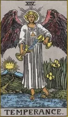 Умеренность, символизирует исцеление, душу, искусство. Она связана с духовностью, медитацией и способностью к исцелению.
