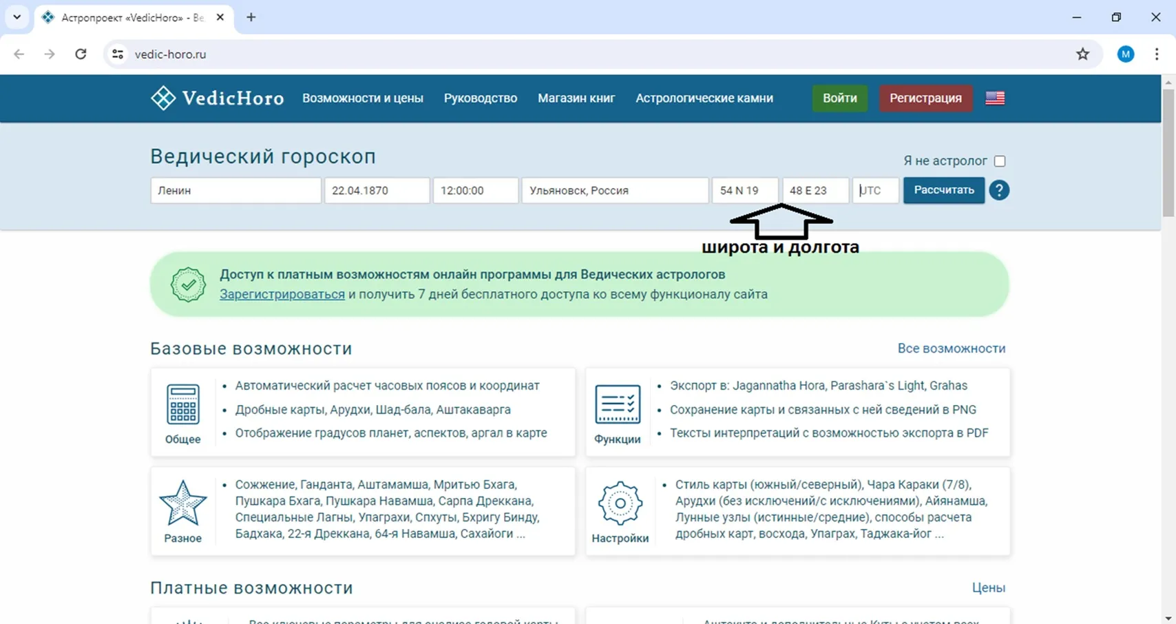 Сначала поставьте галочку «я не астролог», а потом жмите «рассчитать»