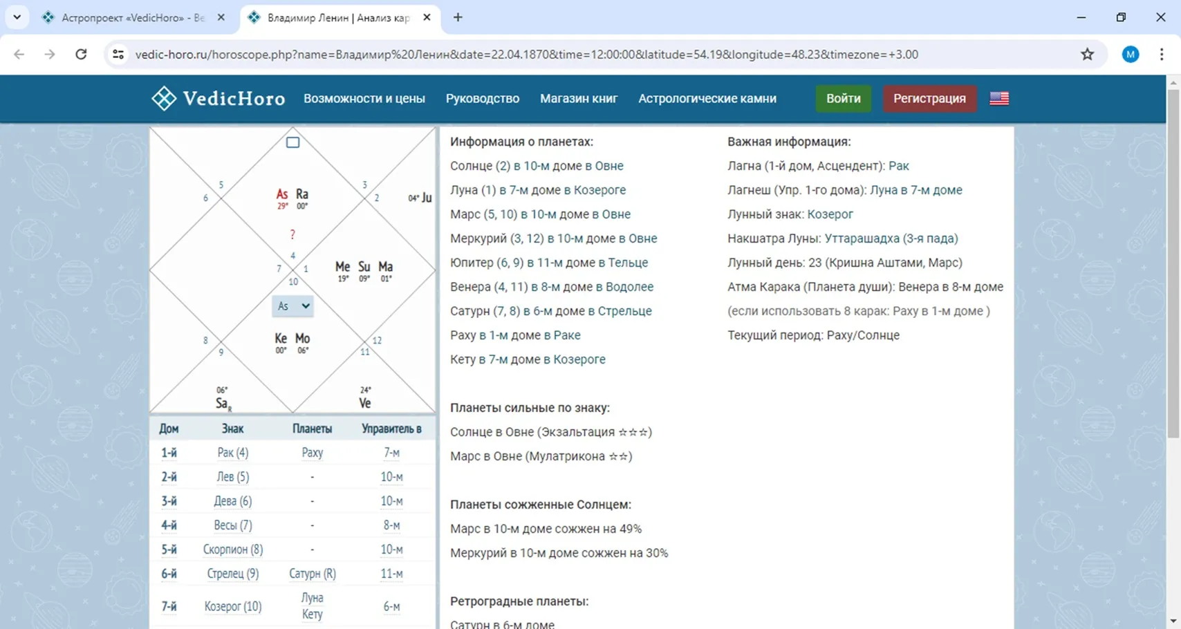 Вот теперь всё готово! Перед нами натальная карта «вождя пролетариата»