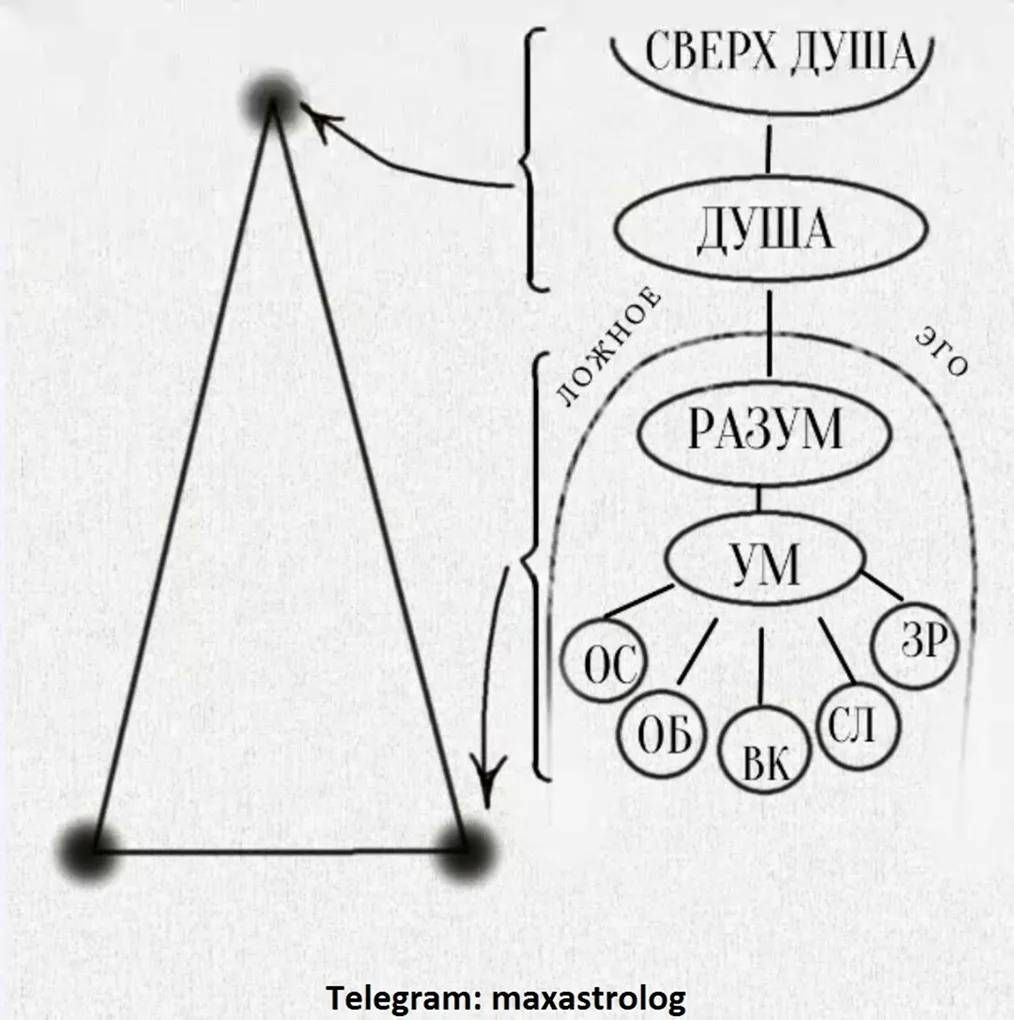 Теперь одновременно посмотрим на схему мироустройства и на уровни сознания человека и, что мы видим? Верно! Одна материальная часть под влиянием ложного эго тянет человека в материальный мир – во все тяжкие, а другая за руку, ведомая сверхдушой, устремляет личность к «ИСТОЧНИК»у, к своей естественной изначальной природе.