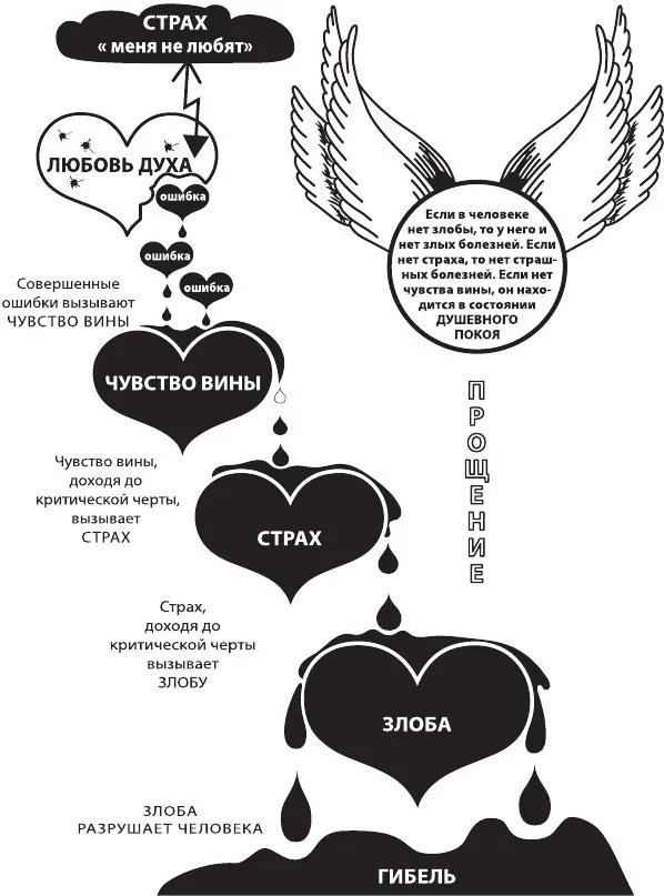 Свои ошибки человек осознаёт перед смертью. Известно, что у умирающих проходит перед глазами вся жизнь, словно кинопленка. Это происходит как раз для понимания собственных ошибок. Злоба ослепляет. Поэтому у больных раком эта кинопленка проходит перед глазами по многу раз прежде, чем они освободятся от мук. Больной раком, который выучился прощению и правильно его применяет, может выздороветь. Но если болезнь зашла слишком далеко, то больному выпадает счастье уйти из жизни после агонии, длящейся лишь несколько минут.