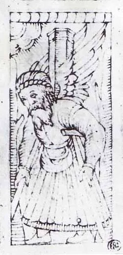 Крона греки считали либо верховным божеством, либо старшим сыном Урана и Геи. Отвечал за земледелие и ассоциировался со временем (Хронос). Здесь возникает желание отметить семиотическое сходство с картой Таро «Отшельник» или, как она называется в колоде Таро Ротшильда – «Отец Времени» (здесь и далее все изображения карт Таро см. (5)), но мы пока лишь укажем на частичное сходство этих значений. На самом деле смысл карты куда глубже, и раскроется нам лишь в самом конце нашего путешествия.