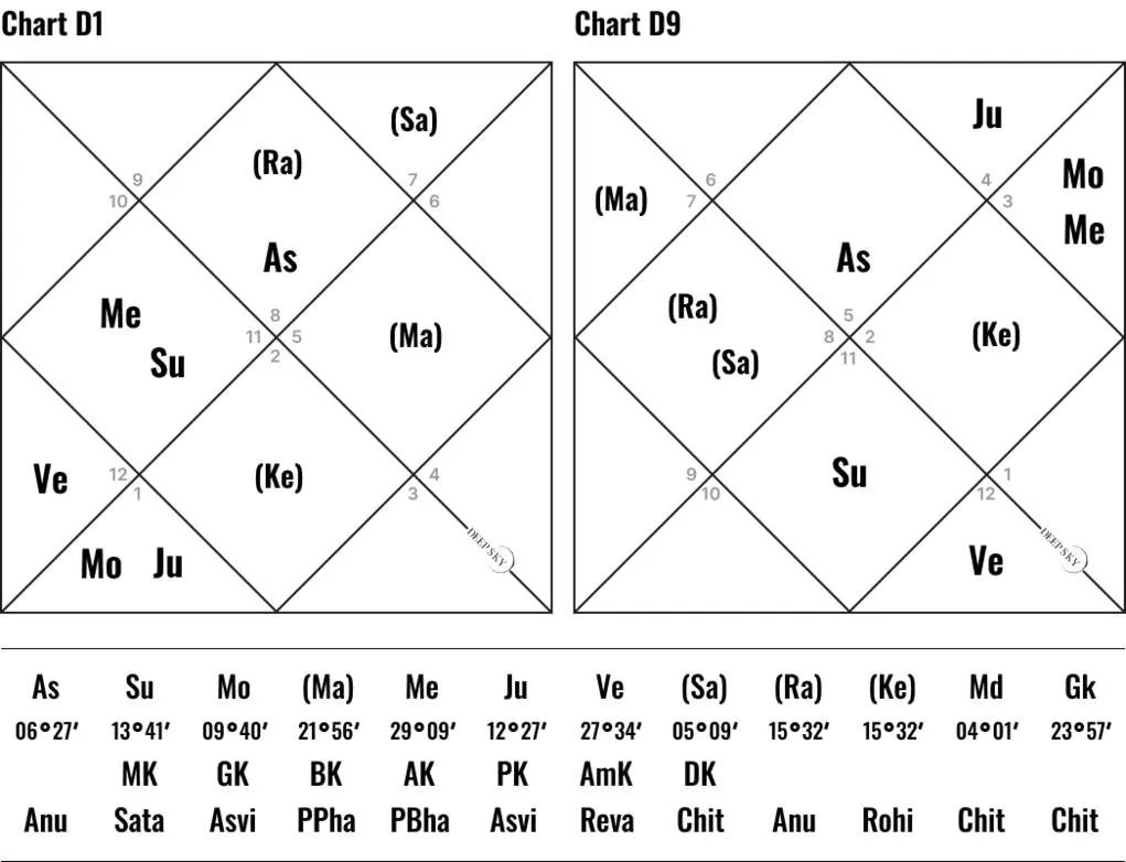 – Гаджа Кешари Йога (благоприятное соединение двух добрых планет) в шестом доме увеличивает дела этого дома и способствует тому, чтобы в государстве были вражда и противостояние.