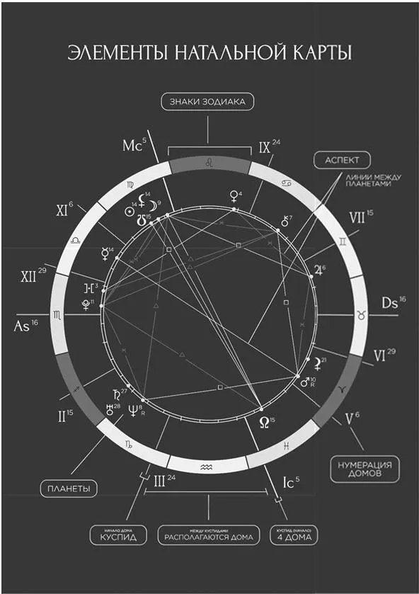 Открой свою натальную карту и убедись, что знаешь, где находятся значки планет. Понимаешь, в каком из домов, и различаешь, в каком знаке зодиака стоит та или иная планета.