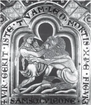 Самсон борется со львом. Деталь Верденского алтаря, 1181 г.