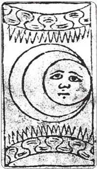 В этом контексте интересна трактовка Аркана «Луна», изложенная в «Энциклопедии оккультизма» О. Мёбиса (ГОМа): «На самом верху картины льет свой тихий свет Луна, безнадежно-математически, в строгой системе направляя свой конус лучей, но лунный свет есть свет отраженный. «Где же Первоисточник Света? – воскликните вы: – мы хотим получить Свет непосредственно от него». Карта отвечает вам: «Вы подчинены Иерархическому Закону; вы не имеете прав на свет из Первоисточника; он отпускается вам ближайшей иерархической инстанцией; будьте довольны своей порцией света, вы, которые падением добровольно погрузили себя в иллюзорный план размножения бинеров» (бинер – объект и его отражение).